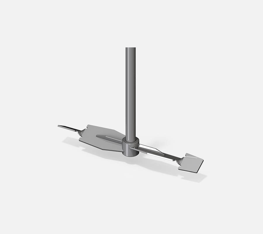 Anchors/Gate type impellers are close-clearance impellers that fit the contour of the vessel. These impeller provide adequate mixing under the laminar flow conditions encountered in high viscosity applications for heat transfer. There are many applications that other type of impellers are integrated with the anchor. These impellers sweep the whole wall surface of the vessel and agitate most of the fluid batch through physical contact. Anchor impellers are used for liquid viscosities between 5,000 and 50,000 cP. When reaction/mixing homogeneity is required, other type of impellers are recommended.